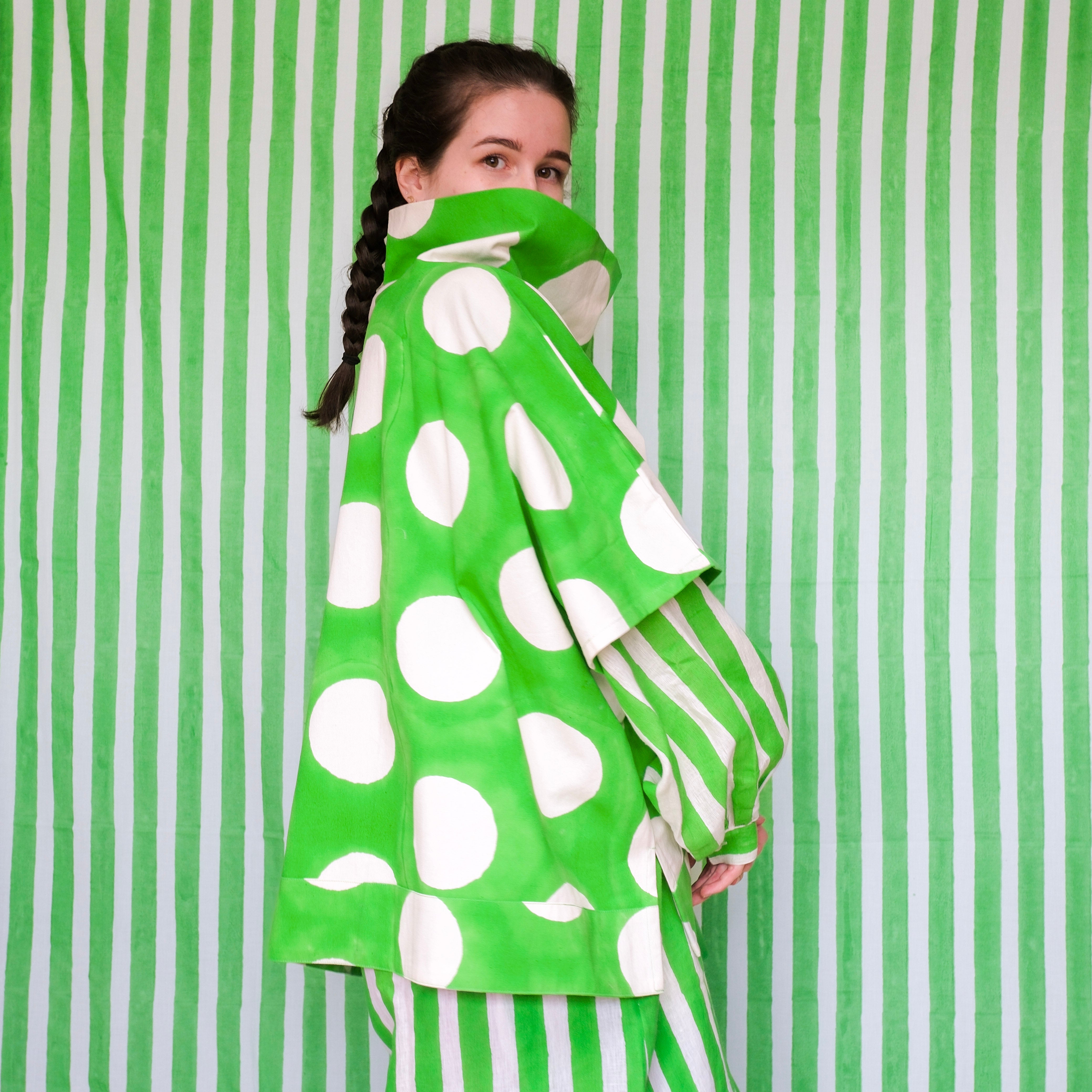 Agnes is made from a cotton twill- heavy enough to be a light jacket or a top layer over any outfit. This cotton is soooo soft- it feels great right next to your skin.