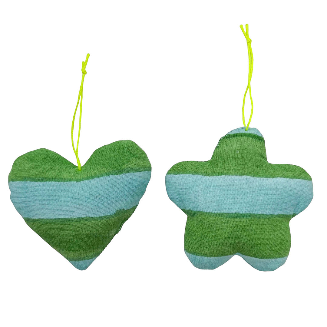 Joyful Mini Pillow Tree Ornament in Blue and Green Cabana Stripe - Set of 2