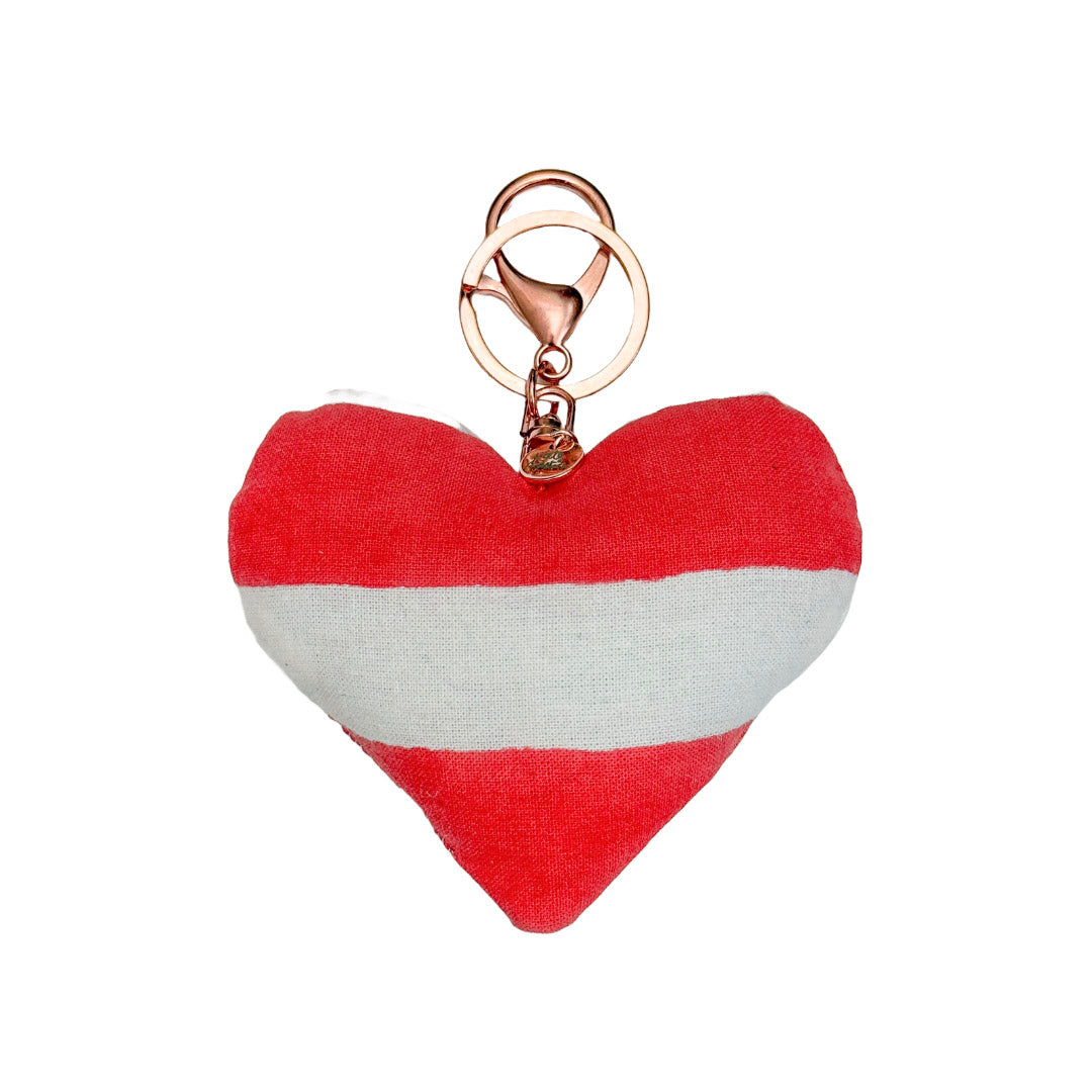 Stuffed, puffy, pillowy soft heart charm to make your keys easily finadable and super cute- and they look so cute on a bag too! 100% organic cotton AZO free dyesFairtrade certified, handmade and, blockprinted with love in Jaipur.